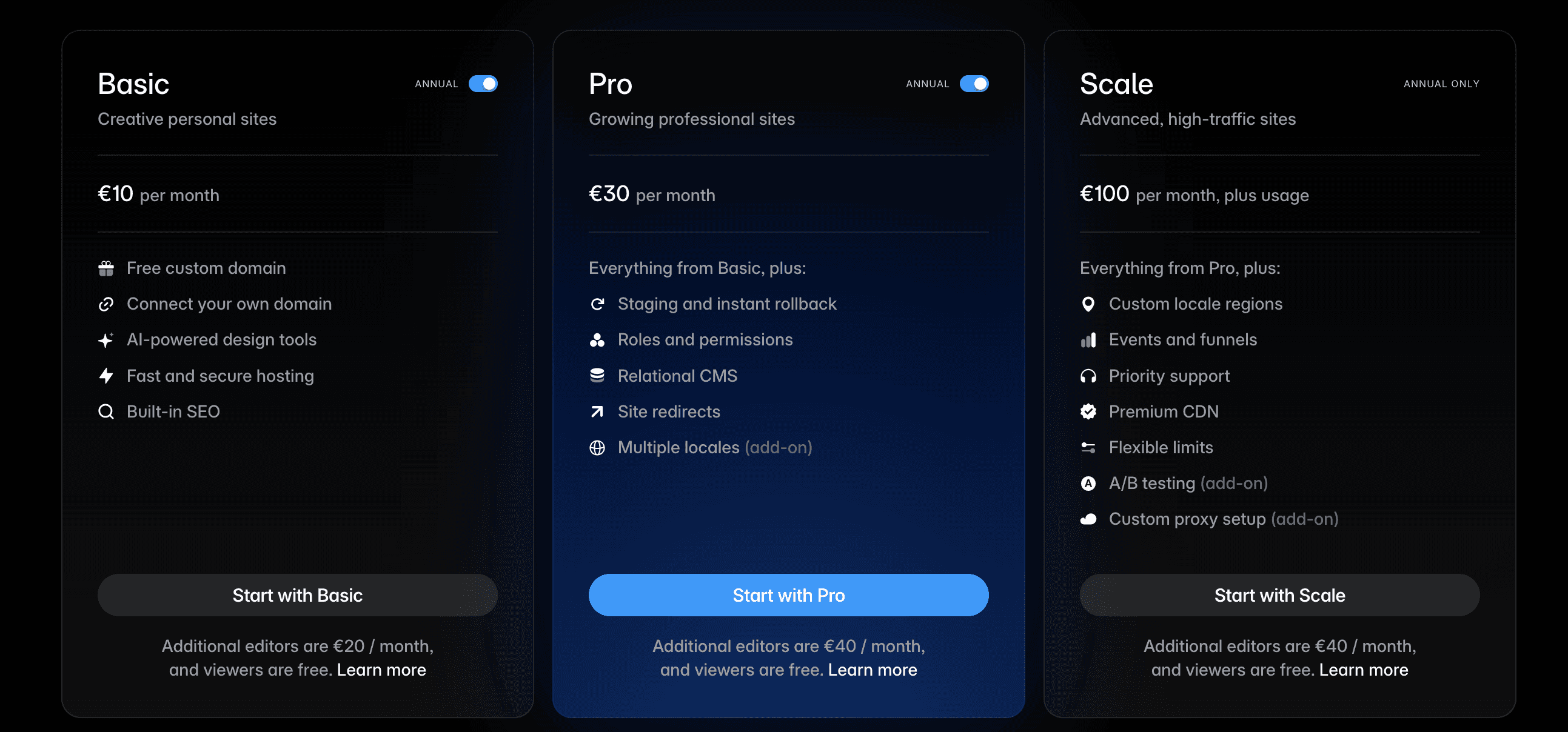 Do you need more than 1 CMS collection? For example for Case studies AND Blog posts for SEO… Get the Pro Plan.